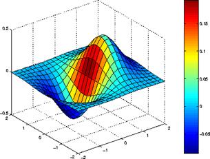 [x,y] = meshgrid([-2:.2:2]);Z = x.*exp(-x.^2-y.^2);