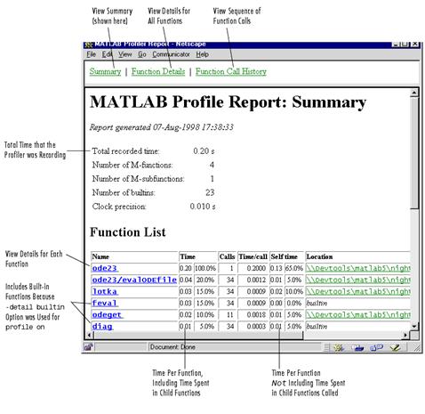 Pentru imbunatatirea performantelor fisierelor MATLAB se utilizeaza un instrument MATLAB numit Profiler. Acest instrument furnizeaza informatii utile privitoare la timpul alocat calculelor efectuate de fiecare linie program.