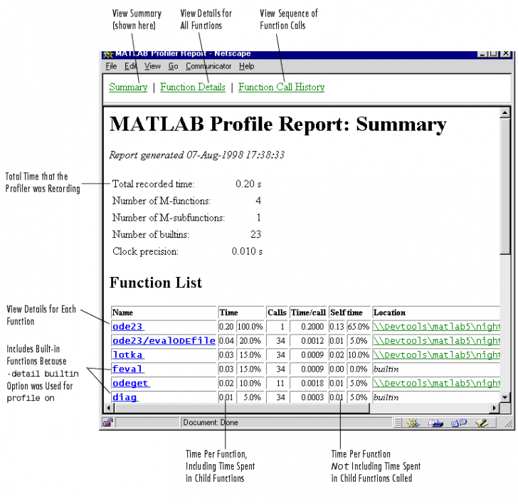 Profiler-ul MATLAB Pentru imbunatatirea performantelor fisierelor MATLAB se utilizeaza un instrument MATLAB numit Profiler. Acest instrument furnizeaza informatii utile privitoare la timpul alocat calculeCiteste tot ... 760 cuvinte