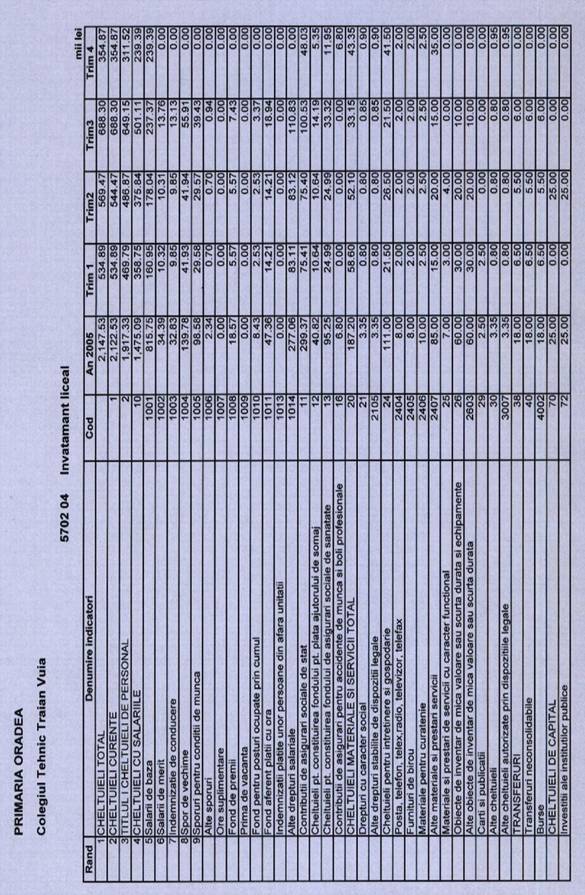 scolara coordonatoare prezinta proiectul de buget propriu si proiectul de