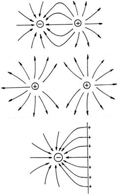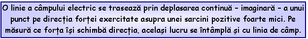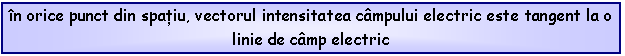liniile de camp electric incep (pornesc) sau se termina (sosesc) de pe sarcina electrica generatoare de camp |