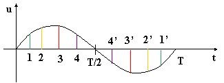Se observa ca intr-o semiperioada (T/2) marimea u are valori pozitive, iar in cealalta semiperioada, are valori negative. De asemenea, impartind cele doua semiperioade in mai multe intervale, se observa ca valorile corespunzatoare momentelor 1 - 1' sunt egale, dar de semne contrare. Deci in expresia mediei aritmetice, termenii respectivi se vor anula. Acelasi lucru este valabil si pentru valorile instantanee corespunzatoare momentelor 2 - 2'; 3 - 3' s.a.m.d.
