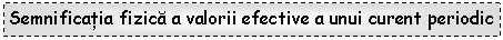 Daca marimea periodica este un curent, atunci valoarea sa efectiva este egala cu valoarea unui curent continuu care, trecand prin aceeasi rezistenta ca si curentul periodic, face sa se dezvolte aceeasi cantitate de caldura in timp de o perioada.