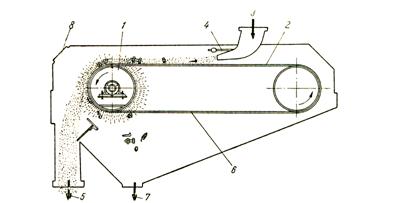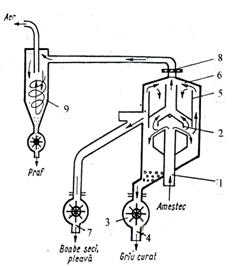 aerului; 4 - racord la reteaua de aspiratie; 5 - racord alimentare; 6 - caseta cu site; 7 -site; 8 - bile de cauciuc sau perii; 9 - ax de comanda; 10