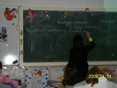 Crearea climatului afectiv necesar desfasurarii lectiei: Copiii vor avea ecusoane in piept cu numele lor. In clasa vom avea proiectorul pornit pentru vizualizarea unei prezentari In clasa vor fi expuse imagini cu personajele din "Dumbrava minunata" Buna ziua, copii! Captarea atentiei se va realiza cu ajutorul unor exercitii recapitulative proiectate pe perete si care copii le vor rezolva oral. Reactualizarea cunostintelor se va realiza cu ajutorul unor exercitii cu grupurile de sunete "ea, ia, ie, oa, ua, ua". Azi, copii, eu v-am pregatit cateva exercitii cu grupurile de litere "ea, ia, ie, oa, ua, ua". Sa ne amintim ce am invatat. Noi, azi vom face un fragment din "Dumbrava minunata" de Mihail Sadoveanu. Vom citi, vom explica cuvintele noi, vom face propozitii cu ele si vom realiza si planul de idei. Prima data eu v-am pregatit ceva. Le prezint date despre autor si operele lui, proiectand un material pe perete si citind cu voce tare. Le prezint 2 carti scrise de Mihail Sadoveanu apoi trecem la fragmentul din manual. Eu va voi citi o data textul, iar apoi am sa va pun cateva intrebari sa vad daca ati fost atenti. Citesc lectia! Care este titlul lecturii? Cine este autorul? Care sunt personajele? Unde s-au adapostit Lizuca si Patrocle? Cine a aparut? Cum ii multumeste Lizuca pe Patrocle? Bravo, ati fost atenti si ati stiut raspunde la toate intrebarile! Acum haideti sa citim pe fragmente. Cine poate spune cate fragmente are textul? De unde stim? Acum deschideti-va si caietele. Sa notam data, titlul lectiei si autorul. Vom citi pe fragmente si vom explica cuvintele necunoscute. Cine vrea sa citeasca? Numesc un copil care sa citeasca primul fragment. Ce cuvinte necunoscute aveti in acest fragment? Scorbura=scobitura in trunchiul unui copac, gaura, adancitura. Cine alcatuieste o propozitie, oral, cu cuvantul "scorbura"? Numesc mai multi copii, iar apoi ii intreb ce cuvinte mai au necunoscute. Rachita=salcie, nume dat mai multor tipuri de salcie cu frunza ingusta si lunguiata. Alcatuiti propozitii. Alt cuvant mai aveti? Ghemuit=strans, facut ca un ghem Faceti o propozitie cu ghemuit Bun, mai aveti cuvinte in acest fragment? Cine citeste al doilea fragment? Numesc un copil care sa citeasca al doilea fragment. Ce cuvinte necunoscute aveti in acest fragment? A mormai=a marai Faceti o propozitie cu "a mormai" Alt cuvant necunoscut? Dispret=sentiment de desconsiderare, de nepasare, dezapreciere. Faceti si propozitie. Mai aveti cuvinte in acest fragment? Cine citeste ultimul fragment? Numesc un copil care sa citeasca. Ce cuvinte necunoscute aveti in acest fragment? Dadu=a dat Faceti o propozitie va rog! Dar oare in acest fragment ce inseamna acest cuvant? Poate Lizuca sa dea tipatul, adica sa il ofere? Dar ce poate sa faca? Faceti o propozitie cu "dadu" dar sa aiba acest sens. Mai aveti alte cuvinte? Acum vom alcatui planul de idei. Cate fragmente am identificat in text? Cate idei principale vom formula? Scrieti in caiete: Plan de idei Mai citim o data primul fragment si vom formula ideea principala. Numesc un copil care sa citeasca primul fragment. Care este ideea principala? Eu scriu ideea pe tabla. Cine citeste al doilea fragment? Numesc un copil sa citeasca si al doilea fragment. Care este ideea principala in acest fragment? Bravo! Haideti sa notam si in caiete ideea. Cine citeste ultimul fragment? Numesc alt copil sa citeasca. Care este ultima idee principala? Copii, acest text trebuie sa aiba si o concluzie. Care credeti voi ca este concluzia acestui text? Bun, bravo! Cu ajutorul planului de idei, voi imi veti povesti lectia. Cine vrea sa vina in fata sa povesteasca, eu va ajut? Numesc un copil sa povesteasca lectia cu ajutorul planului de idei. Mai numesc 2-3 copii. Bravo copii! Ati fost atenti si cuminti! Sunteti o clasa de copii destepti si harnici. Puteti iesi in pauza! |