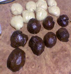 -portionarea a cate doua bilute:una alba una neagra suprapuse;