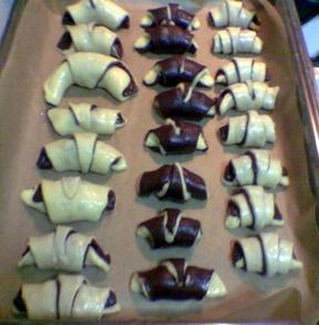 Fiecare cornulet se unge cu ou si se coace timp de 15-20 minute sau pana ce au o culoare aurie.
