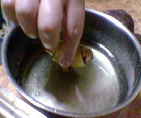 Drojdia se pune intr-o cana impreuna cu 2 linguri de apa calda si se lasa 15 minute pentru a dospi.