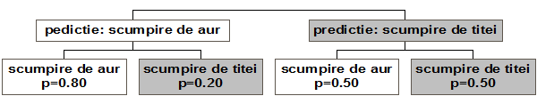 Raspunsul tipic al subiectilor este 80%. Raspunsul indica faptul ca majoritatea oamenilor aloca atentie limitata probabilitatilor de baza adica a faptului ca 85% a taxiurilor din oras sunt verzi deci probabilitate initiala ca accidentul sa fi fost produs de o masina verde este mult mai mare. Calculand probabilitatea luand in considerare atat probabilitatea initiala cit si probabilitatea posterioara adica probabilitatea indicarii corecte a culorii masinii de catre martorul ocular, obtinem o probabilitate de 41%. Adica probabilitatea ca masina implicata sa fi fost chiar albastra, asa cum a indicat martorul, este mai scazut decat probabilitatea ca masina sa fi fost albastra. Acest efect s-a observat chiar si in situatii de diagnostic medical, in care consecintele unor greseli pot fi extrem de grave. In vederea explicarii fenomenului s-au construit mai multe teorii. Una dintre teorii explica efectul obtinut prin faptul ca subiectii sunt incapabili de calcule probabilistice, iar situatiile similare in lumea reala sunt foarte rare. In experimentul nostru am reusit sa cream o simulare economica pe calculator, in care probabilitatea de schimbare a perturilor era diferit pentru doua produse, iar predictiile economice care puteau fi utilizate in decizii de investitii, puteau fi manipulate. In simularea noastra am reusit sa simulam probabilitatea initiala si probabilitate posterioara in asa fel incat problema sa fie realistica si dinamica, iar din deciziile subiectilor am reusit sa estimam gradul de adaptabilitate strategica. Intr-una din situatiile experimentale aplicate probabilitate cresterii pretul aurului (produs 1) era de 67% in timp ce probabilitate cresterii titeiului era de 33%. Aceste probabilitati nu erau aduse la cunostinta subiectilor in mod explicit dar puteau fi aflate din experientele dicizionale adunate in timpul probei. Acuratetea predictiilor economice in aceasta proba erau de 67%. Adica predictiile economice erau in 67% corecte. In aceasta situatie probabilitatile de castig erau conform figurii de mai jos. Dupa predictia economica a scumpirii de aur daca subiectul cumpara aur avea 80% sanse de castig in timp ce cumparand titei avea doar 20% sansa de castig. Dupa predictia economica a scumpirii de titei daca subiectul cumpara aur, avea 50% sanse de castig in timp ce cumparand titei, avea aceeas sansa de castig.