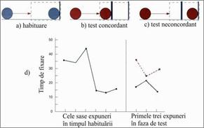 la 45" la 15". . In faza de testare, copiilor li se prezentau doua situatii: una posibila, concordanta cu cea cunoscuta (figura nr. 5b) si una imposibila si discordanta cu cea de habituare (figura nr. 5c).