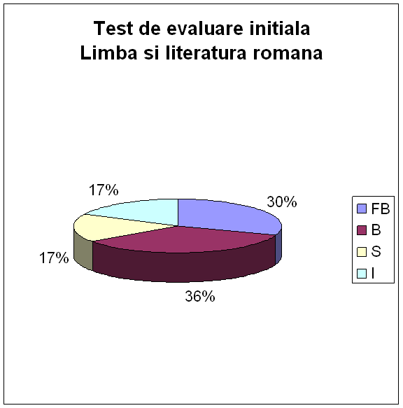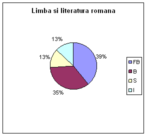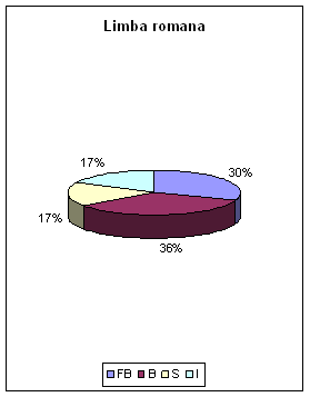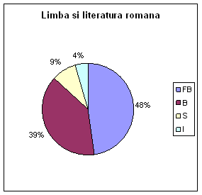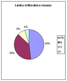 La limba si literatura romana rezultatele au fost : FB - 7 elevi, B - 8 elevi, S - 4 elevi si I-4 elevi.