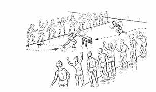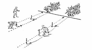 Prin doua linii paralele, la o distanta de 10-14 m una de alta, se delimiteaza o linie de plecare si o linie de intoarcere.
