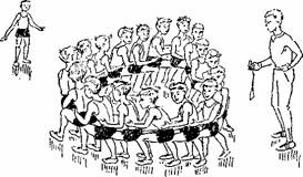 Se formeaza doua echipe, egale ca numar, si fiecare echipa se alinii un rand, inapoia uneia dintre linii.