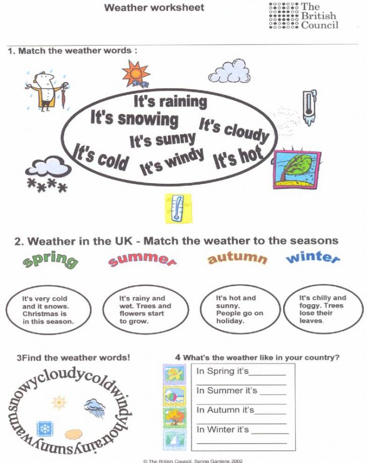 Sts. - are asked to write on their handouts the four seasons and the teacher writes them on the blackboard with different coloured chalk.