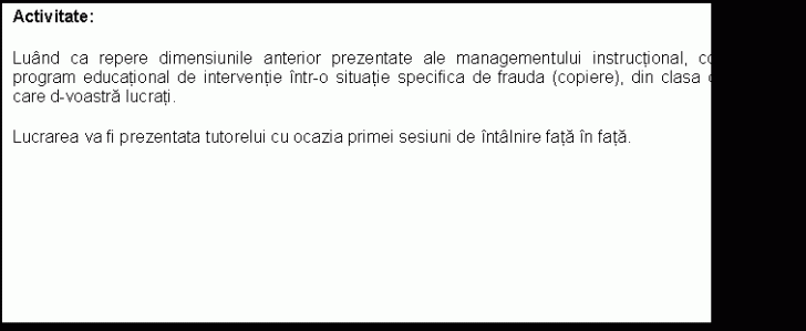 curriculara sau intr-un program de studiu) si managementul problemelor disciplinare