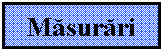 exercitii-joc de masurare cu palma, creionul, etc. a lungimii unor obiecte; comparari de lungimi de obiecte avand aceeasi lungime sau lungimi diferite; efectuarea unor masurari folosind etaloane neconventionale date; exercitii-joc de masurare cu paharul, bile, cuburi a masei sau capacitatii unor obiecte; identificarea si utilizarea instrumentelor de masura potrivite (linia gradata, metrul) pentru efectuarea unor masuratorilor ; identificarea si utilizarea instrumentelor de masura potrivite pentru efectuarea unor masuratori (litrul, recipientul care are capacitatea de un litru); identificarea si utilizarea instrumentelor de masura potrivite (kilogramul) pentru efectuarea unor masuratori; identificarea si utilizarea instrumentelor de masura potrivite pentru efectuarea unor masuratori (ora); exercitii de stabilire a multiplilor si submultiplilor fiecarei unitati de masura ; exercitii de ordonare cronologica a unor imagini; compararea duratelor unor activitati; citirea ceasului, reprezentarea pe un ceas a diverselor ore; inregistrarea activitatilor desfasurate intr-o saptamana; identificarea monedelor si bancnotelor din sistemul monetar romanesc actual; identificarea monedelor si bancnotelor necesare pentru cumpararea unui obiect; |
