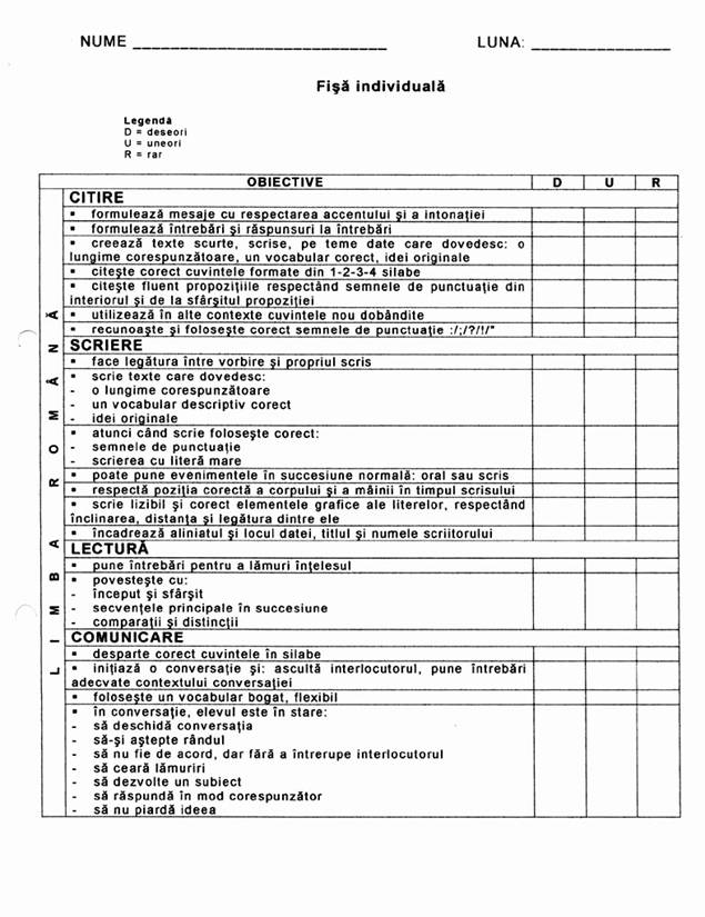 consemnate, listele de verificare, intrevederile invatator-elev,