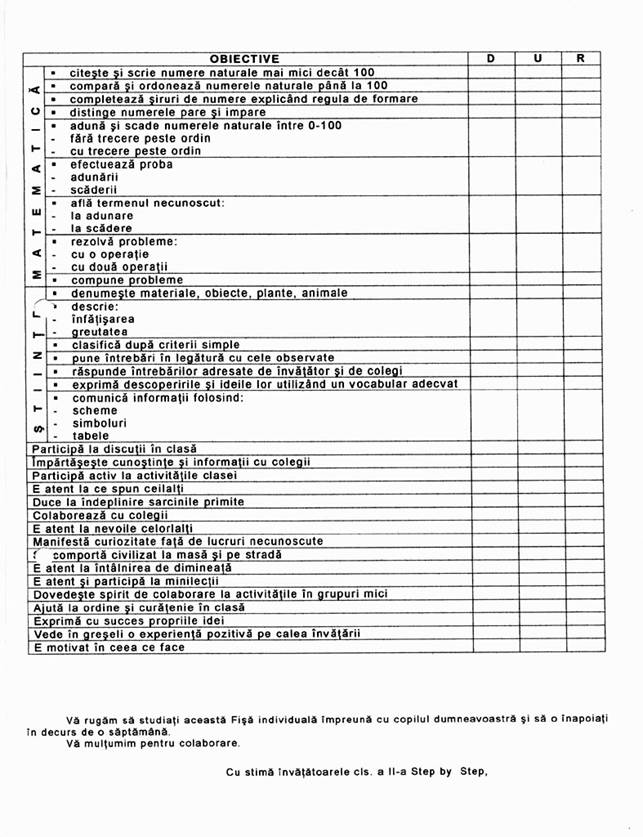 Step caietul de evaluare este un document scolar unde sunt precizate