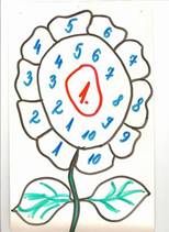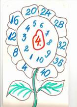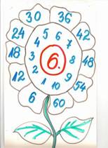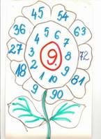 Pe razele pornind din centru, dinspre interior spre exterior se citesc inmultirile numerelor naturale de la 0 la 10, iar din exterior spre interior, impartirile.