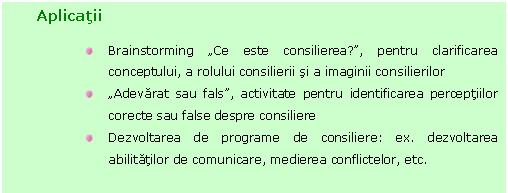 Concepte cheie: consiliere educationala, consiliere psihologica, consiliere vocationala, abilitati, metode, proiectare