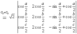 "Pentru a calcula mai usor determinantul, sa incercam sa aducem functiile f, g si h la o forma mai simpla." "Vom folosi formulele de la trigonomerie pentru unghiuri duble." "Atunci determinantul va fi :" "Observam ca avem 2 coloane proportionale. Atunci determinantul va fi nul." Le spun ca s-au descurcat bine, le dau indicatii asupra caror formule si exercitii trebuie sa mai insiste. Le dau tema de casa: de invatat, de rezolvat |