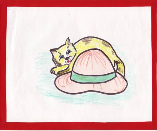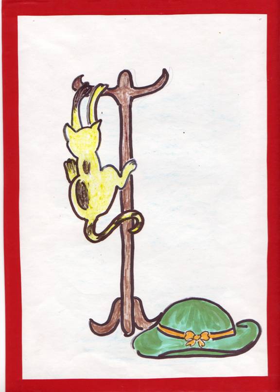 This is Felix,the cat. It is playng with the hat. Acesta este Felix ,motanul.El se joaca cu palaria. This is Micky,the mouse.The mouse wants to eat cheesse.Acesta este Micky,soricelul.El vrea sa manance branza. Arat prima plansa: Where is felix ,the cat? Unde este Felix ,motanul? El este in palarie. It is IN the hat.-cer copiilor sa repete propozitia. What colour is the hat?-Ce culoare are palaria? It is a red hat. Where is Micky ,the mouse ?-Unde este Micki soricelul? -Este in bucata de branza.It is IN the cheesse. Unde este motanul Felix? Where is Felix,the cat? Este langa palarie. It is near the hat. Ce culoare are palaria? What colour is the hat? Este o palarie galbena. It is a yellow hat. Aratati-mi ceva galben in sala de grupa. Show me samething yellow in our class room. That is a yellow car. Se prezinta si celelalte planse Se solicita copiilor sa interpreteze un cantec despre culorile invatate RAINBOW SONG Red and yellow and pink and green Purple,and orange and blue I can sing a rainbow Sing a rainbow Sing a rainbow too. |