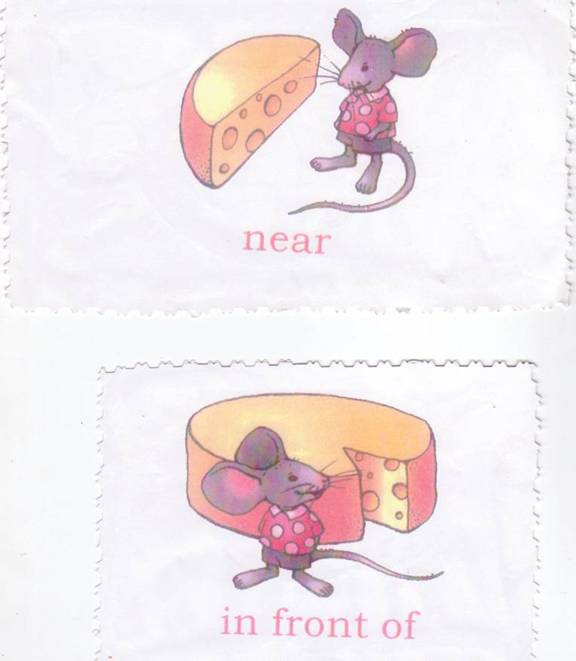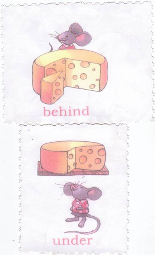 Cer copiilor sa atrate imaginea cu Micky ,the mouse ,indicandu-le pozitia spatiala: up-sus,behind-in spate,under-sub,near-langa,on-pe. |