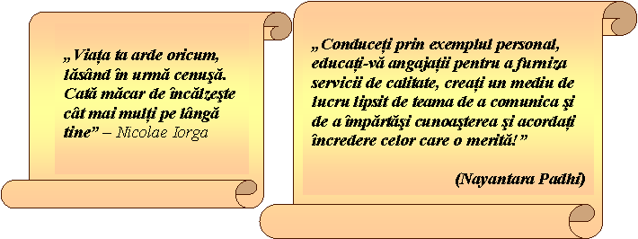 Cresterea nivelului de in-credere prin incurajarea comunicarii pt. deschide-rea catre sugestii constructive. Promovarea si incurajarea activitatilor in echipa. |