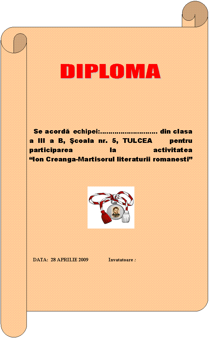 Astazi ne vom juca rostind framantari de limba, vom canta cantece, vom interpreta diverse roluri, vom descrie animalelele si plantele intalnite in opera lui Creanga , vom discuta despre personaje pentru ca opera celui mai mare povestitor roman a tuturor timpurilor sa dainuiasca in sufletele noastre, cati ani vom trai pe acest pamant.