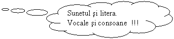 Despre ce am vorbit ora trecuta ? ( Sunetul si litera; Vocale si consoane) Am pregatit pentru voi o fisa de lucru ( anexa 1); veti preciza numarul sunetelor si literelor unor cuvinte , veti denumi fructele ilustrate notand vocalele si consoanele dupa care veti nota si numara vocalele si consoanele unei propozitii. , Verific tema din punct de vedere cantitativ si calitativ in timp ce elevii rezolva sarcinile fisei Verific fisa prin enuntarea orala a solutiilor iar la pe marginea ultimei propozitii din fisa purtam o scurta discutie despre toamna . |