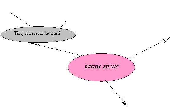 Se scriu pe tabla cuvintele REGIM ZILNIC. Elevii sunt solicitati sa spuna orice cuvinte, ce le vin in minte , care au legatura cu cuvintele scrise pe tabla. Se noteaza pe tabla toate raspunsurile care se dau. Au loc dezbateri legate de semnificatia cuvintelor date. Se concluzioneaza: REGIM ZILNIC = PROGRAM ZILNIC.