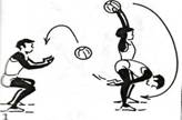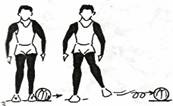 2. Dezvoltarea fortei cu ajutorul mingei medicinale Ø Din pozitia cu mingea medicinala orientata in sus ,trecerea ei printre picioare si pasarea unui coleg aflat in partea din spate(imaginea 9) Ø Elevii asezati fata in fata unul are mingea medicinala si o paseaza de sus colegului care o receptioneaza la nivelul pieptului (imaginea 10) Ø Elevii asezati fata in fata unul are mingea medicinala si o paseaza de la nivelul pieptului colegului (imaginea 11) Ø Elevii asezati fata in fata unul are mingea medicinala si o paseaza colegului (imaginea 12) Ø Culcat dorsal pe podea ridicarea in pozitie orizontala (imaginea 13) Ø Stand in picioare iar alaturi avand o minge medicinala,o indeparteaza cu ajutorul piciorului (imaginea14) Ø Elevul tine la nivelul pieptului o minge medicinala si realizeaza deplasare in salturi (imaginea 15) |
