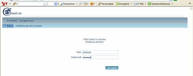 Pasul 2 : Tastezi numele contului e-mail in campul Utilizator