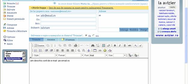 In continuare vom arata modul de utilizare a serverului email.ro.