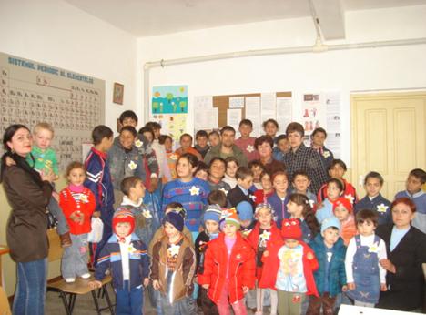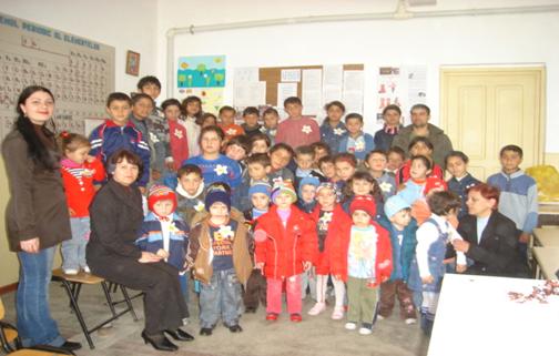 Copiii din grupa mica impreuna cu parintii lor au pregatit mici cadouri constand in hainute si jucarii pe care le-au daruit elevilor din clasa a-III -a B-Sc.Siret-Marasesti(copiii romani dar cu origini rome).