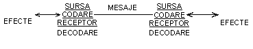 b) Dubletul sursa / codare - receptor / decodare - pune in evidenta faptul ca fiecare dintre cei doi parteneri este pe rand emitator (codor) si receptor (decodor), manifestandu-se - in acelasi timp - ca emitator si receptor al propriului mesaj. Aceasta relatie evidentiaza, de asemenea, ca oricare dintre participantii la interactiune poarta mai intai un dialog cu sine (comunicarea intrapsihica!) de unde se lanseaza, apoi, in circuitul interpersonal.