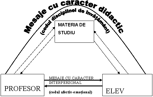 Sintetizand, interactiunea didactica angajeaza, in acelasi timp, mesaje care opereaza in doua coduri comportamentale relativ distincte: codul mesajelor cu caracter scolar si codul mesajelor cu caracter interpersonal (vezi Fig. Nr...):