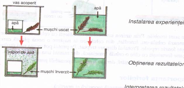 Mod de lucru:- se pune un pahar cu apa intr-un reecipient mai mare in care este muschi de pamant uscat.Se acopera cu un capac.