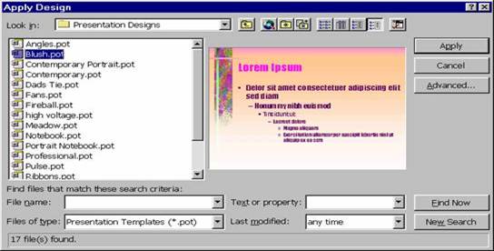 In fereastra Apply Design care apare (vezi figura nr.2) se afiseaza sabloanele disponibile iar cel curent ales se va vizualiza in mod Preview.