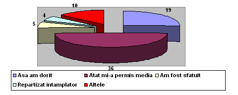 -stabilirea gradului in care locul in respectivul liceu se datoreaza dorintei elevului sau altor factori si identificarea acestora,