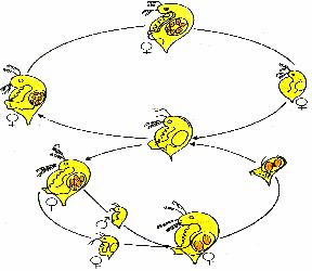 decat femelele, pe care le fecundeaza; rezulta ,,oua de