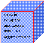 v Elevii din grupa verbului "aplica" vor avea un set de intrebari grila in care vor aplica formulele pentru calculul ariei sau volumului prismei regulate drepte in contexte variate.