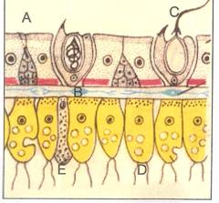 Protozarele sunt organisme microscopice,unicelulare, cele mai simple ca structura.Etimologia vine din lb. greaca(protos=primul si zoon=animal) Spongierii sunt organisme: pluricelulare, heterotrofe, acvatice, hermafrodite; sunt organisme coloniale(traiesc in colonii) Corpul buretelui are aspectul unei mase gelatinoase, de culoare cafeniu-cenusie, cu aspect neregulat( aceasta reprezinta o colonie de indivizi). Peretele corpului unui individ este format din doua straturi de celule: strat extern cu celule turtite strat intern cu celule care au cate un flagel protejat de un guleras. intre cele 2 staturi se gaseste un strat gelatinos care contine ace de siliciu infipte intr-o substanta numita spongina Pe suprafata coloniei se observa orificii mari numite osculi, si altele mai mici, numite pori.Fiecare individ are un oscul. Functia de nutritie Hranirea este heterotrofa(apa si organismele patrund in corpul buretelui prin pori, unde celulele cu flagel si guleras le digera in vacuolele lor digestive),iar excretia se face prin oscul(resturile ramase nedigerate sunt eliminate prin oscul). Respiratia- oxigenul dizolvat in apa intra prin pori in fiecare celula, au loc procese de ardere in urma carora rezulta dioxidul de carbon, ce este eliminat prin oscul. Reproducerea -primavara(conditii favorabile) este sexuata prin contopirea celulei sexuale masculine (spermatozoid) si cea feminina (ovul); in urma acestui proces rezulta celula-ou care se dezvolta, devine larva cu cili, care dupa ce innoata o perioada se fixeaza pe un suport si da nastere unei noi colonii. -toamna(conditii nefavorabile) formeaza muguri de rezistenta, din care primavara vor aparea noi spongieri. Au capacitate de regenerare, datorata slabei legaturi intre celulele corpului, care permit acestora sa traiasca si in grupuri separate. Asemanari - sunt primele animale, cu organizare simpla - digestia se face la nivelul vacuolei digestive - parameciul se poate inmulti si sexuat,ca buretele - ambele categorii imbraca forme de rezistenta in conditii nefavorabile Deosebiri -primele au corpul alcatuit dintr-o singura celula, spongierii sunt pluricelulari - primele sunt forme solitare, celelalte sunt coloniale - primele se intalnesc in apele dulci, celelalte sunt forme de apa dulce dar si sarata - primele sunt mobile, celelalte sunt forme fixe - eublena si amiba se inmultesc asexuat(diviziune longitudinala) iar buretele se inmulteste sexuat - euglena verde se hraneste autotrof(face fotosinteza) si heterotrof iar buretele se hraneste doar heterotrof - primele elimina substantele de excretie cu ajutorul vacuolei contractile sau pulsatile, iar buretele elimina produsii de excretie prin oscul |