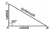In acest caz, spunem ca Δ ABC este dreptunghic in A. In plus latura BC (opusa unghiului drept A) se numeste ipotenuza; laturile AB si AC se numesc catete.