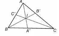 Asadar, exista trei bisectoare [AA' [BB' [CC'. Am notat cu A' punctul de intersectie al bisectoarei lui A cu latura [BC] etc.
