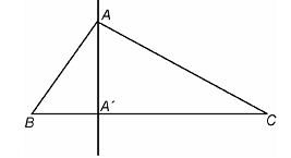 De exemplu, inaltimea care trece prin A se numeste inaltimea din A a triunghiului ABC. Am notat-o cu AA' (aici, A' este intersectia inaltimii din A cu latura opusa, BC).