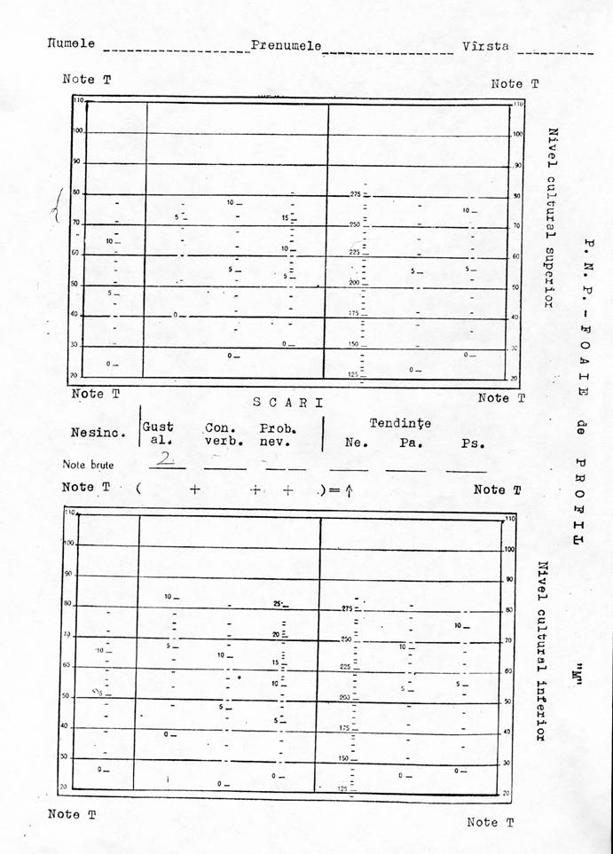Aceste puncte se trec pe foaia de profil obtinandu-se in marginea din dreapta a foii nota T corespunzatoare, in cazul nostru aproximativ 75. Acest rezultat reprezinta tendinta la nevrotism a subiectului.