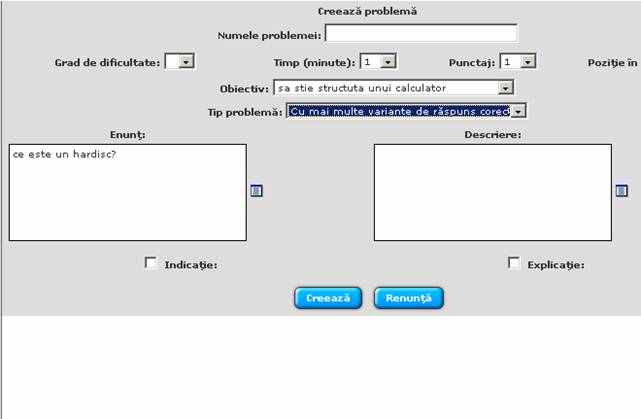 salvez problema si ma intorc la creare problema dar aleg alt tip de item specific si alte lucruri ca:pozitie problema in test,punctaj,obiective.