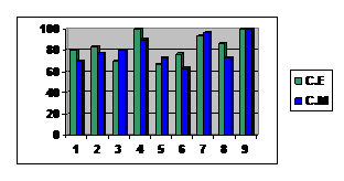 1. Analiza actualelor programe pentru evidentierea superioritatii unor tehnici de evaluare (x) fata de alte tehnici de evaluare (y) in aspecte de intra- si interdisciplinaritate, de interactivitate sau a complementaritatii lor.