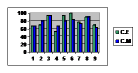 Prin tehnica esantioanelor paralele/echivalente, am avut in vedere: apropiere ca varsta si pregatire, numarul subiectilor din fiecare clasa fiind aproximativ egal, predominand fetele, ca in majoritatea claselor, dar nu la mare diferenta de numarul baietilor. In functie de continuturile prevazute de programa, am ales doua clase a V a (una, colectiv de control - C.M. alcatuit din 17 fete si 13 baieti, alta, colectiv experimental - C.E.-16 fete, 14 baieti) pentru evaluarea speciei de basm popular. La nivelul clasei a VIII-a , am optat pentru doua clase (una C.M., alta C.E.) egale numeric (15 fete si15 baieti) pentru studiul baladei populare. Intrucat cele doua tipuri de esantioane nu se deosebesc semnificativ la inceputul experimentului, diferentele constatate la sfarsitul acestuia le-am pus pe seama variabilelor independente, a factorilor experimentali, a modificarilor pe care le-am introdus numai la clasele experimentale, interesandu-ne, ca variabile dependente, performantele scolare si comportamentale ale elevilor. Din compararea nivelului de start (mediile scolare ale subiectilor cuprinsi in cercetare), a rezultat ca sunt colective omogene, aproximativ egale ca valoare, desi mediul de provenienta este eterogen.